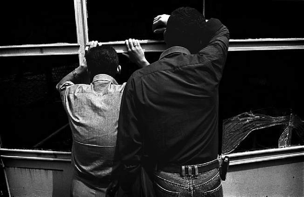 Two men are looking at the reptiles pavilion in the small zoo of the Gülhane Parki, Istanbul.