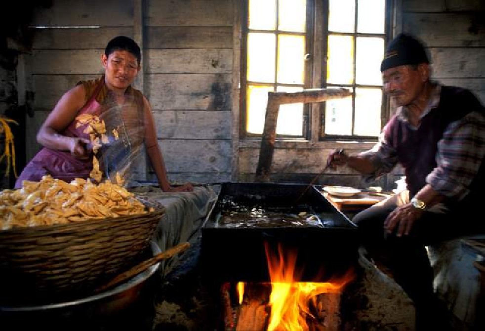 Nuns of Geden Choeling Monastery preparing lunch during the festivities for "Losar", the Tibetan New Year. Dharamsala. India.