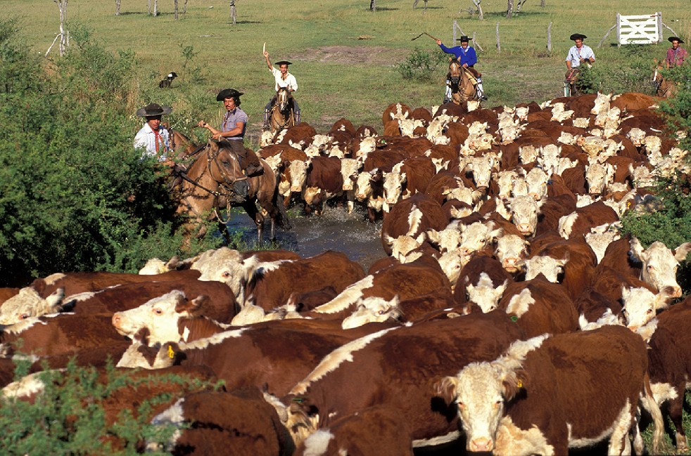 The Gauchos, Patricio Estay, Argentina, animals, herd, horses, cows, oxen, men, man, horseman, horsemen, hats, going on horseback, gauchos, riders, riding, view, river, on horseback, outdoor, water, cattle, drove, La Estrella, pasture, ranch, estancia, hacienda, traditions, tradition, travel, ground, earth, gaucho, galloping, gallop, group, horse, bovine, bovines
